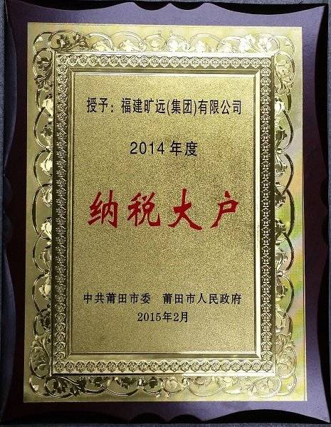 福建曠遠(yuǎn)集團(tuán)榮獲莆田市2014年度“納稅大戶”稱號(hào)