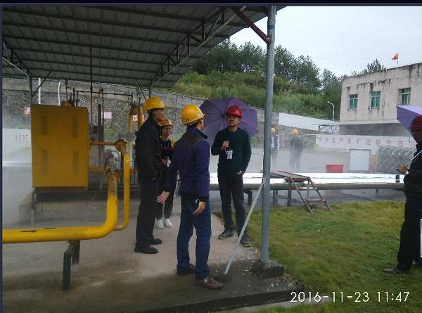 臨近年末,為確保2016年燃氣行業安全生產的持續穩定,11月23日,龍巖市住建局燃氣管理站聯合市質監、市消防、市交通局及上杭縣住建局等職能部門,在上杭縣中陽管道天然氣有限公司副總經理郭明亮、安全運營部經理徐躍等的陪同下,對上杭中陽儲配站安全運行管理情況進行全面安全大檢查。