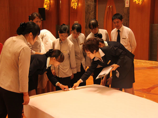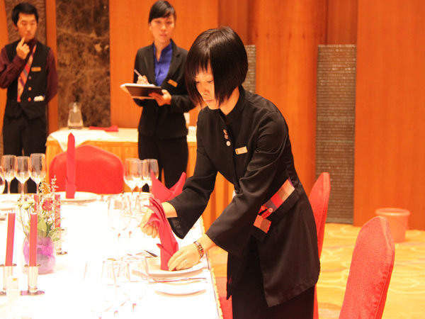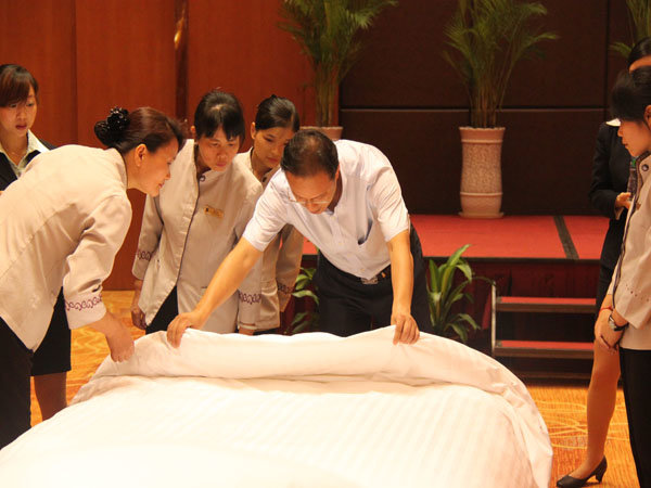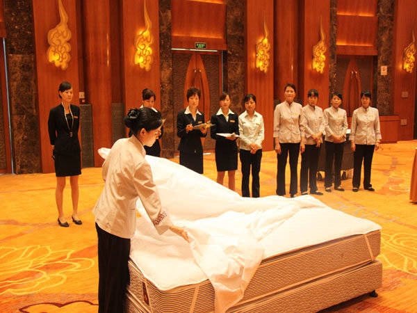 為了提高酒店員工的工作技能,更好地為賓客提供優(yōu)質(zhì)的服務(wù),曠遠(yuǎn)錦江酒店于8月10日下午14:00-16:00,開展了“迎星評”技能比賽。活動現(xiàn)場氣氛熱烈,參賽選手表情專注,嚴(yán)陣以待,緊張有序做好每一競賽細(xì)節(jié);旁觀員工摩拳擦掌、躍躍欲試,紛紛為自己的團隊加油鼓勁。經(jīng)過點鈔、鋪床、客房找差錯、中餐擺臺等緊張的競賽角逐, 11名員工脫穎而出,獲得了評委的一致認(rèn)可,在8月12號的星評動員大會上,獲得了公司的相應(yīng)獎勵。