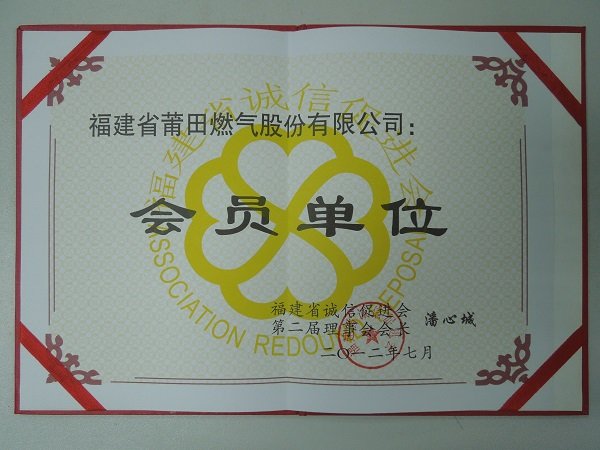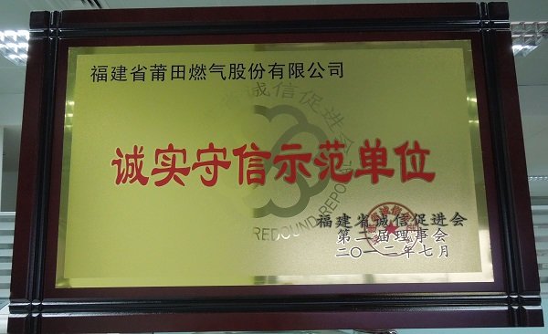 莆田燃?xì)猥@“誠(chéng)實(shí)守信示范單位”稱號(hào)