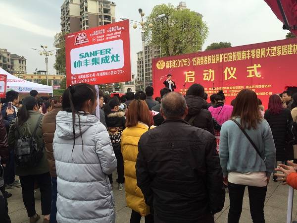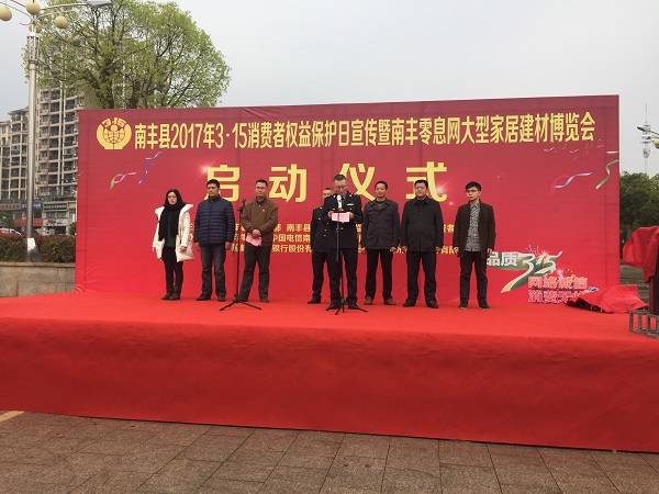 3月15日上午,南豐縣2017年“3.15消費(fèi)者權(quán)益者保護(hù)日”宣傳活動(dòng)暨南豐零息網(wǎng)大型家居建材博覽會(huì)啟動(dòng)儀式在桔都廣場順利舉辦。南豐縣委宣傳部副部長羅健、縣市場和質(zhì)量監(jiān)督管理局局長胡義華、縣消費(fèi)者協(xié)會(huì)會(huì)長、副會(huì)長、各常務(wù)理事單位及主要負(fù)責(zé)人出席啟動(dòng)儀式并發(fā)表講話,南豐縣煙草公司、中國移動(dòng)通信、中國電信集團(tuán)、中國郵政儲(chǔ)蓄銀行及南豐曠遠(yuǎn)能源等多家單位參加該活動(dòng)。