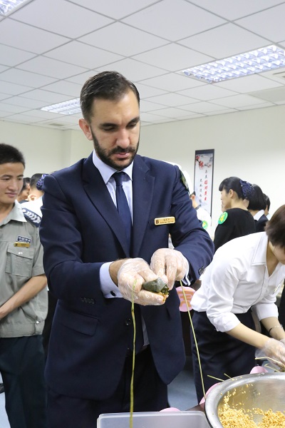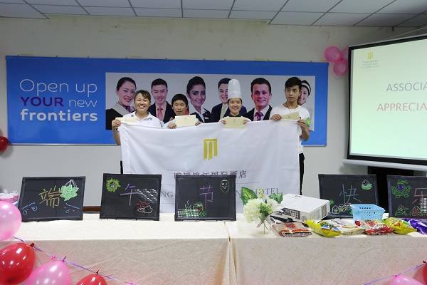 2017年5月24日下午兩點,曠遠錦江國際酒店在培訓室順利開展了端午節員工包粽子比賽。活動開始前,同事們被培訓室濃濃的節日氣氛布展所吸引,紛紛拿起手機合影留念,大家在一片歡聲笑語中開始了本次比賽。