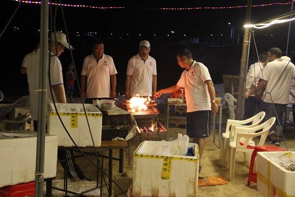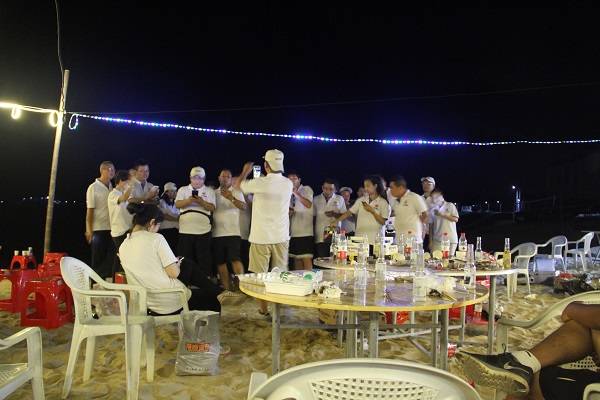 滑沙比賽結束后,所有成員欣賞著海邊的日落與晚霞,并開始著手生火、備材,準備晚餐。其中,海神隊在生火項目中以明顯的優勢,快于其他隊伍首先烤起了食材。每隊隊員們一邊動手燒烤,一邊準備食材,場面好不熱鬧。期間,開懷暢飲、誰是大胃王等趣味比拼,為晚餐增添了諸多歡笑。在合唱的歌聲中,當天活動圓滿結束。