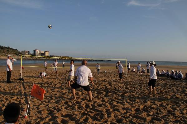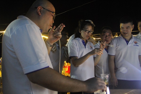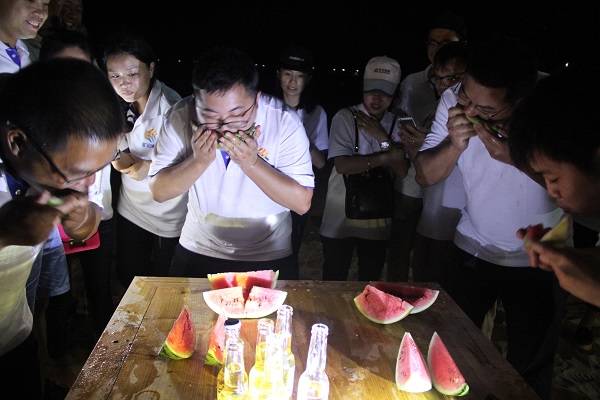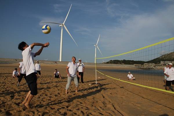 作為當天活動的第三個項目,“大自然的搬運工”在下午14:00隆重登場,該項目考驗的是各成員之間相互協作和團隊分工能力。在烈日照射的沙灘上,每隊隊伍起點的成員奮力奔跑,只為爭分奪秒多取一杯水,而其他隊員則迅速地接過一杯杯水,團隊協作的精神在烈日下顯得耀眼奪目,最終,蛟龍隊獲得該項目的冠軍。休息片刻后,“沙灘排球賽”隨即登場,在兩兩對決的過程中,比拼看點十足,比分步步緊逼,最后,風車隊取得了該項目的勝利。