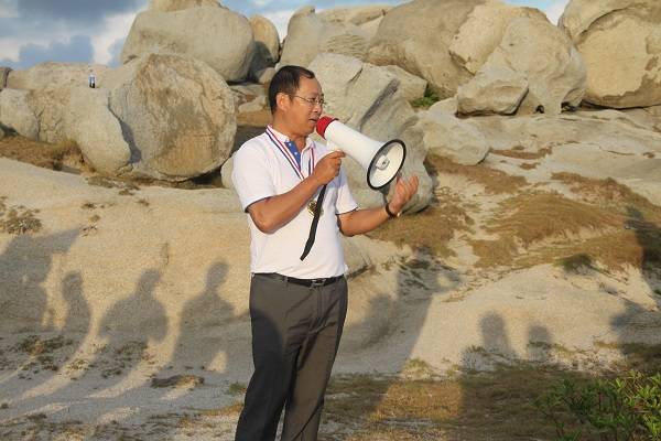 24日凌晨4:30,所有成員出發龍蝦礁觀日出,隨著太陽從海平面徐徐升起,成員們歡呼雀躍。而此時,兩天的活動行程也接近了尾聲。在山頂上,工作人員宣布了兩天來所有項目的比賽結果,“海神隊”以最高得分居冠,董事長王子林親自為獲勝團隊頒發冠軍獎杯和獎牌。緊接著,各隊隊長一一發表活動感言。最后,王董對此次團建活動發表了總結講話,王董對活動的開展給予了肯定,并表示曠遠集團屬于所有曠遠人,望全體人員再接再厲,將活動中的拼搏精神、團隊精神帶到工作中延續。