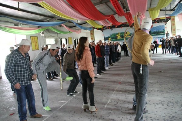 本次活動的最后一個節目為“力拔山兮氣蓋世”,即拔河比賽。經過裁判的簡單講解后,雙方小組摩拳擦掌,氣勢恢宏。實力相差較多的小組比賽令人嗟嘆不已,而旗鼓相當小組的比賽則引爆全場,雙方隊員相持不下,此消彼長,左右挪移。為了讓員工們體驗到巔峰對決,葉總提出,讓全場最壯實的兩名隊員各自分別挑選十名隊員進行皇者之戰,實力不分伯仲的強強之戰再次將整個活動推向高潮,隊員們忘記了組別,忘了曾經的對手,衷心地為兩支雄壯之師加油吶喊。